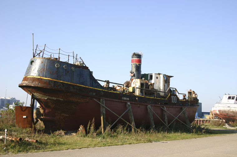 ID: 2006.09.25.001 S/S Dunkan, newarly a wreck, at Kalundborg harbour, Denmark. Beached near Kongstrup in Kalundborg Fjord, Denmark 22/7-2003, sank under tow 26/7-2002, raised 10/4-2003 and placed on land in Kalundborg, Denmark