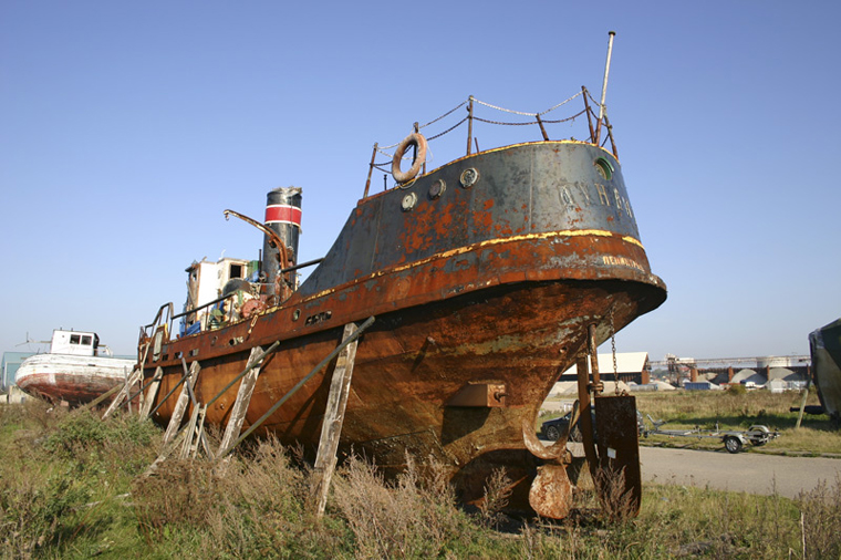 ID: 2006.09.25.004 S/S Dunkan, newarly a wreck, at Kalundborg harbour, Denmark. Beached near Kongstrup in Kalundborg Fjord, Denmark 22/7-2003, sank under tow 26/7-2002, raised 10/4-2003 and placed on land in Kalundborg, Denmark