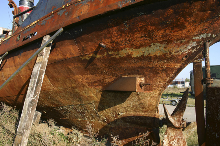 ID: 2006.09.25.005 S/S Dunkan, newarly a wreck, at Kalundborg harbour, Denmark. Beached near Kongstrup in Kalundborg Fjord, Denmark 22/7-2003, sank under tow 26/7-2002, raised 10/4-2003 and placed on land in Kalundborg, Denmark