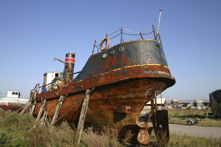 ID: 2006.09.25.022 S/S Dunkan, newarly a wreck, at Kalundborg harbour, Denmark. Beached near Kongstrup in Kalundborg Fjord, Denmark 22/7-2003, sank under tow 26/7-2002, raised 10/4-2003 and placed on land in Kalundborg, Denmark