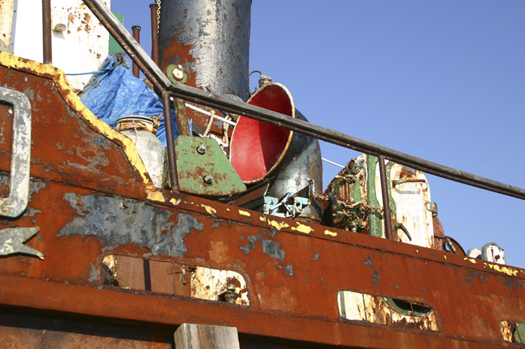 ID: 2006.09.25.037 S/S Dunkan, newarly a wreck, at Kalundborg harbour, Denmark. Beached near Kongstrup in Kalundborg Fjord, Denmark 22/7-2003, sank under tow 26/7-2002, raised 10/4-2003 and placed on land in Kalundborg, Denmark