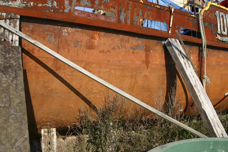ID: 2006.09.25.039 S/S Dunkan, newarly a wreck, at Kalundborg harbour, Denmark. Beached near Kongstrup in Kalundborg Fjord, Denmark 22/7-2003, sank under tow 26/7-2002, raised 10/4-2003 and placed on land in Kalundborg, Denmark