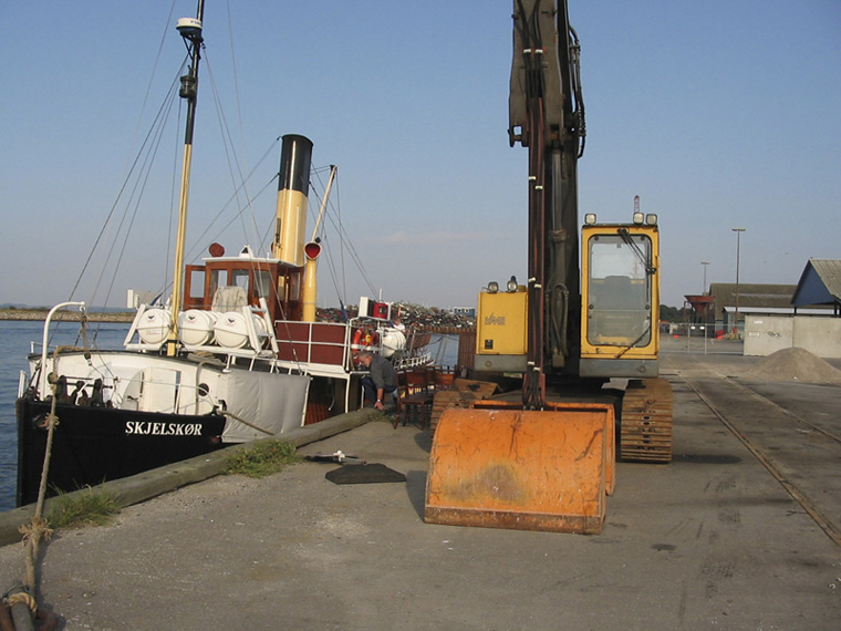 A digger at Holbæk havn, Denmark, used to unload mussels