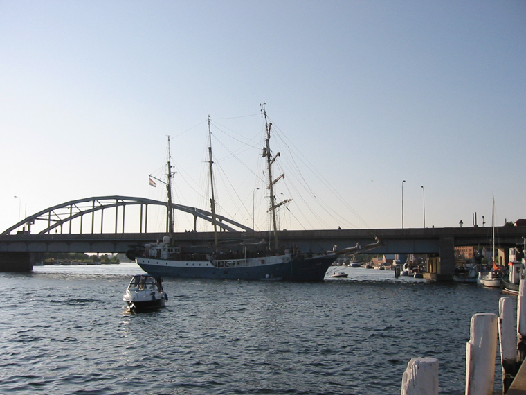 The dutch schooner Atlantis is nearly drifting into Kong Christian den X's bridge