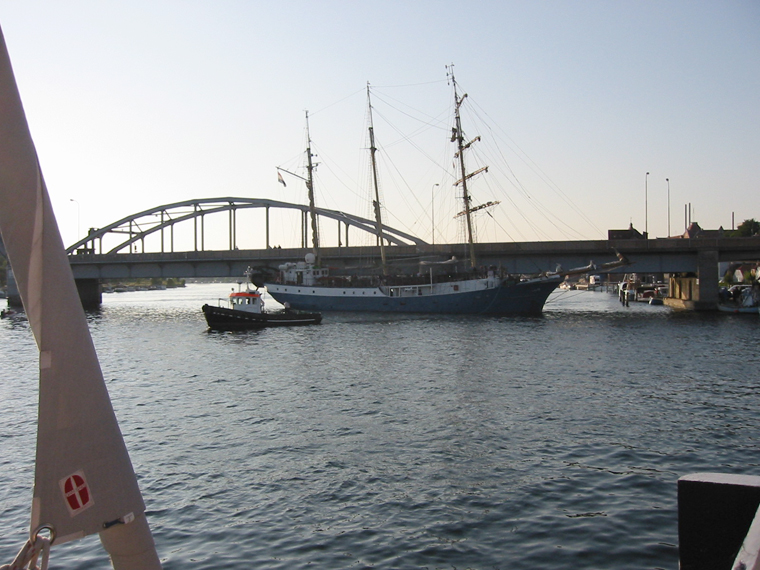 The dutch schooner Atlantis is nearly drifting into Kong Christian den X's bridge
