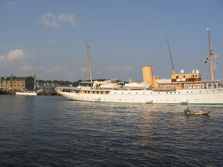 The danish royal yacht DDannebrog is arriving at Svendborg havn, Denmark.