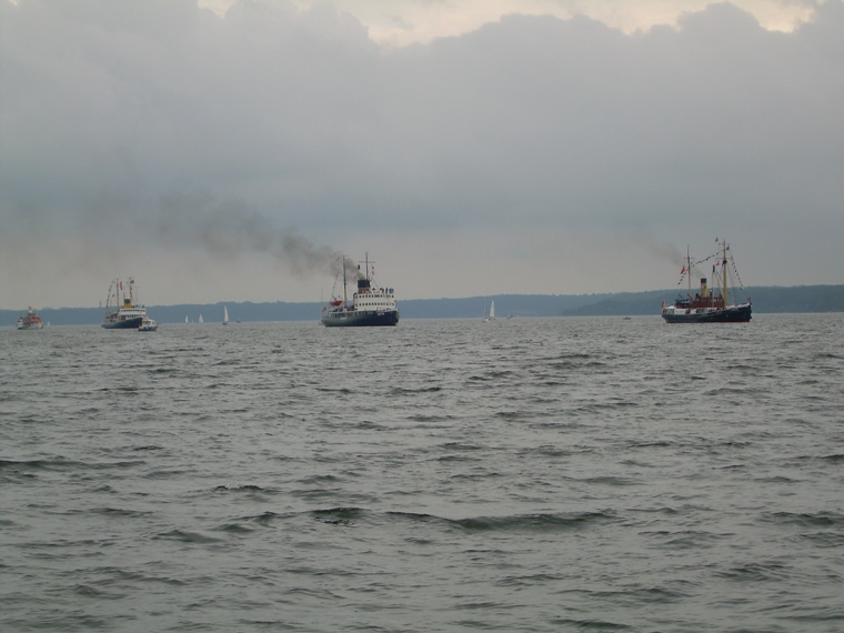 S/S Bussard, S/S Stettin and S/S Wal heading out for the opening parade.