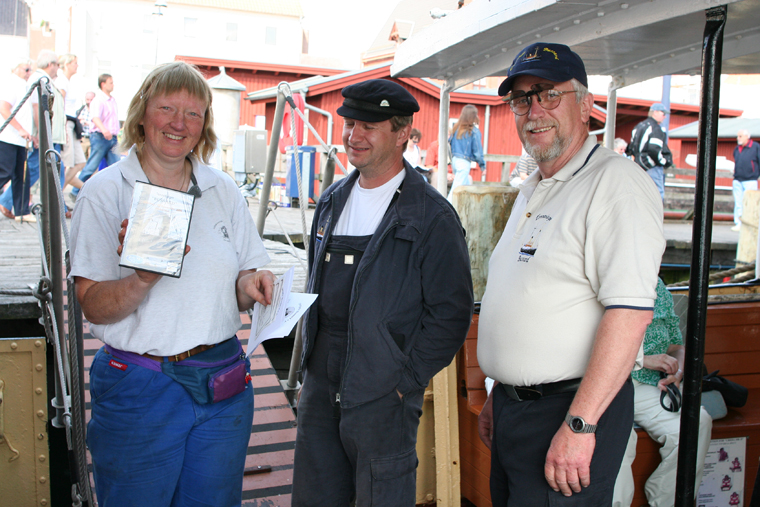 Crewmembers from S/S Bussard hands over a DVD to Kisten Pontoppidan.