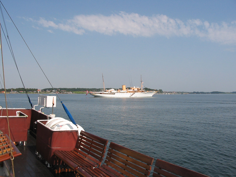 We met the royal yacht Dannebrog on our retyrn trip from Flnsburg, Germany