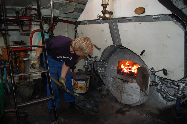 Bjørg Solemsli Uhlen from S/S Børysund was 'guest-stoker' on one of the tours.