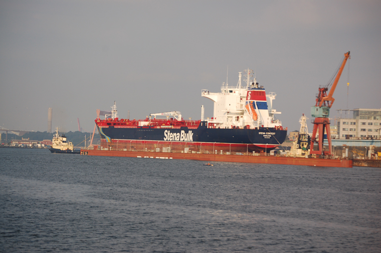 A Stena Line bulk-carrier beeing shepparded into a drydock in Gotheburg harbour.