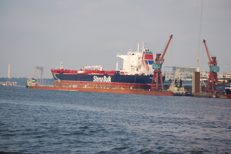 A Stena Line bulk-carrier beeing shepparded into a drydock in Gotheburg harbour.