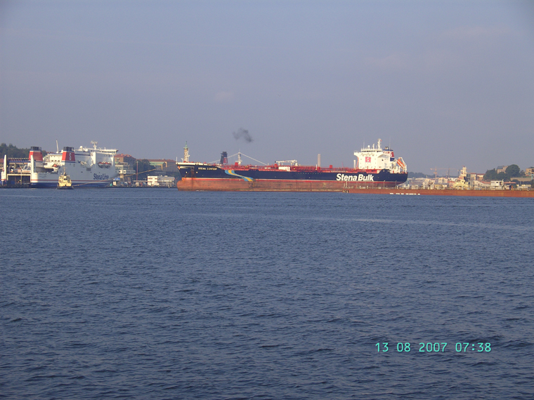 A Stena Line bulk-carrier beeing shepparded into a drydock in Gotheburg harbour.