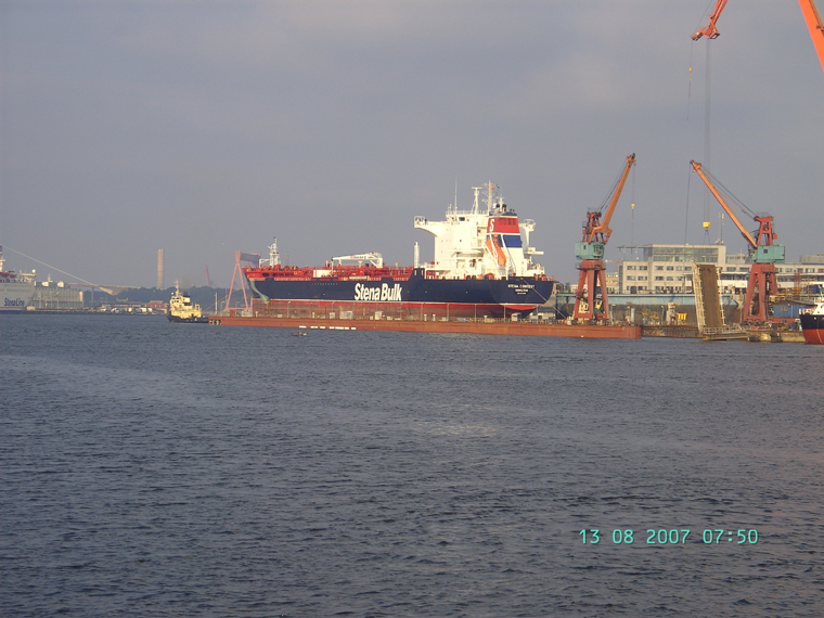 A Stena Line bulk-carrier beeing shepparded into a drydock in Gotheburg harbour.