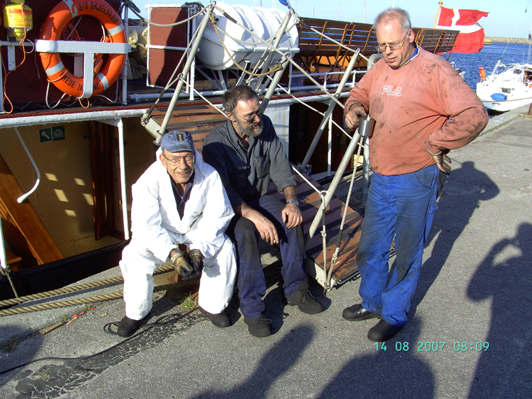 On the island Anholt. Theis Smith, Bendt Højengaard and Erik Markussen after trimming coal.