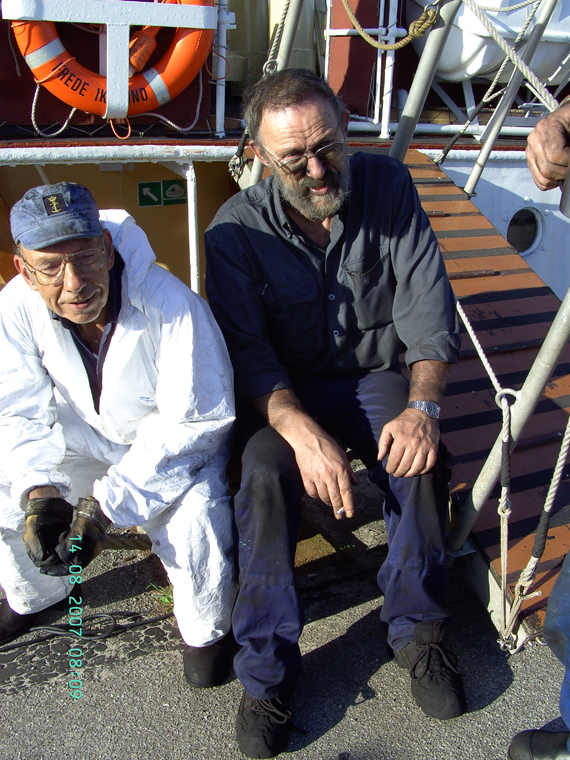 On the island Anholt. Theis Smith and Bendt Højengaard after trimming coal.