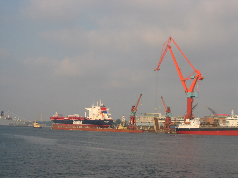 A Stena Line bulk-carrier beeing shepparded into a drydock in Gotheburg harbour.