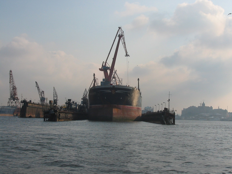 A Stena Line bulk-carrier beeing shepparded into a drydock in Gotheburg harbour.