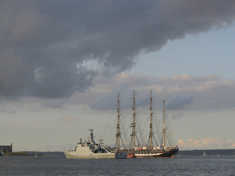 The danish patrol vessel Makrellen (P554) and the russian cadet training ship Kruzenshtern