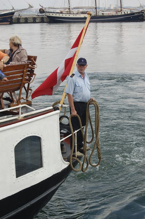 Entering Elsinore harbour, Denmark, after a tourist tour. Peter Munch is ready with a hawser