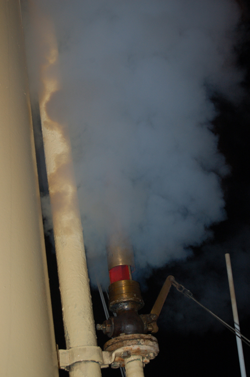 S/S Skjelskør is whistling after the fireworks has finished.