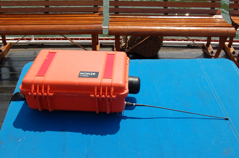 To sail the canal, the ship mus be equipped with AIS, Automatic Identification System. The orange box contains this system.