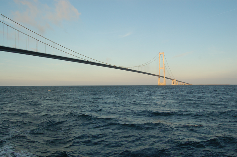 Passing the Great Belt Bridge early in the morning on our return trip from Kiel, Germany to Frederikssund, Denmark.