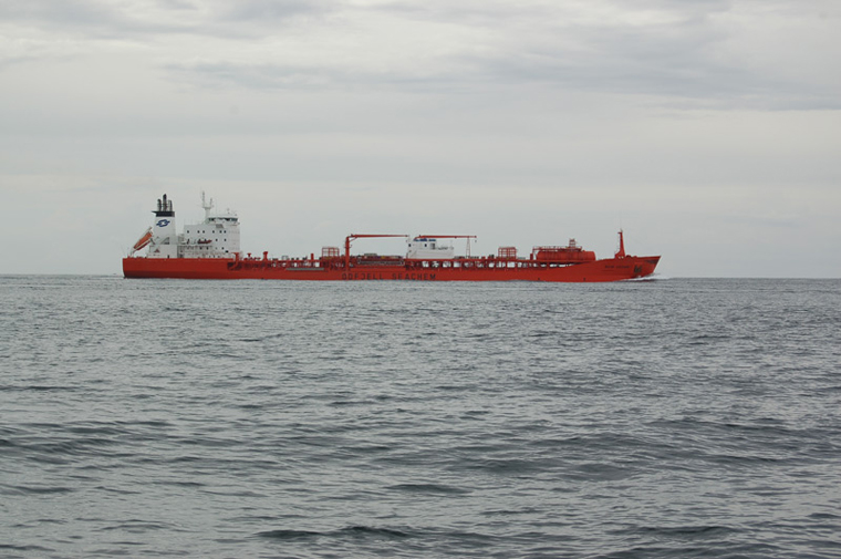 A norwegian tanker, M/S Bow Cedar, en route nothbound in Great Belt, Denmark