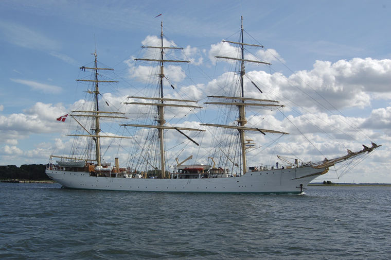 The Trainingship Danmark is entering Odense harbour, Denmark
