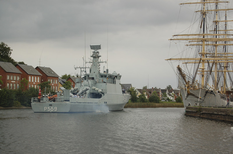 The patrolvessel Lommen (P559) and the Trainingship Danmark