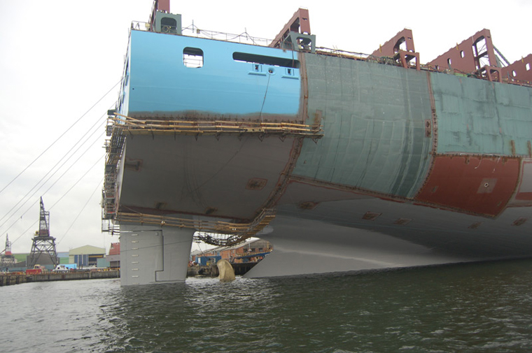 We sailed to the Lindø shipyard during a VIP-trip. We saw a new - very large - PS-series container vessel to Maersk Line during fittig-out.