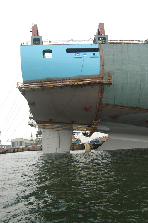 We sailed to the Lindø shipyard during a VIP-trip. We saw a new - very large - PS-series container vessel to Maersk Line during fittig-out.