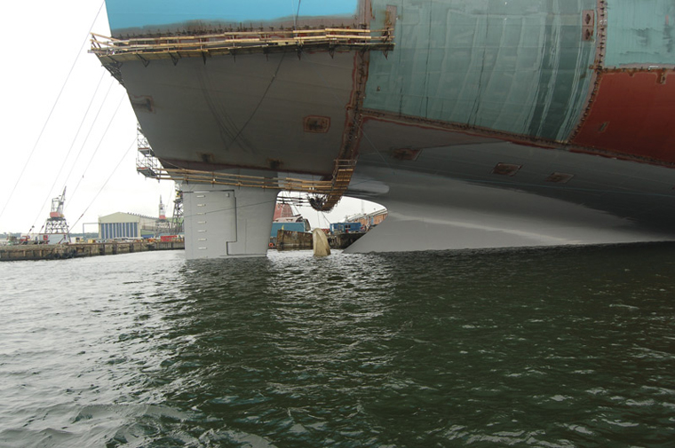 We sailed to the Lindø shipyard during a VIP-trip. We saw a new - very large - PS-series container vessel to Maersk Line during fittig-out.