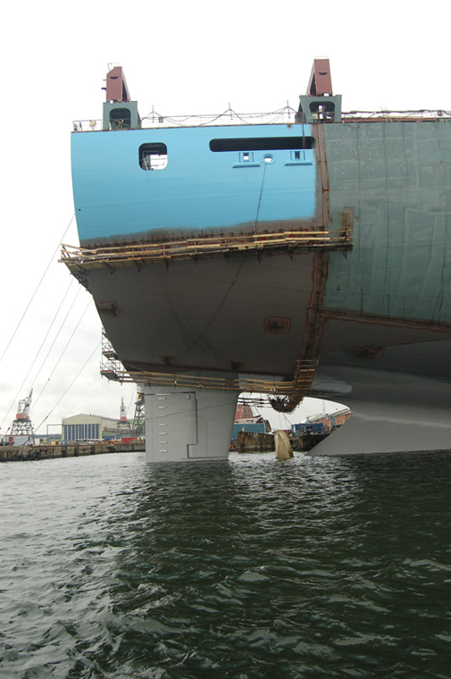 We sailed to the Lindø shipyard during a VIP-trip. We saw a new - very large - PS-series container vessel to Maersk Line during fittig-out.