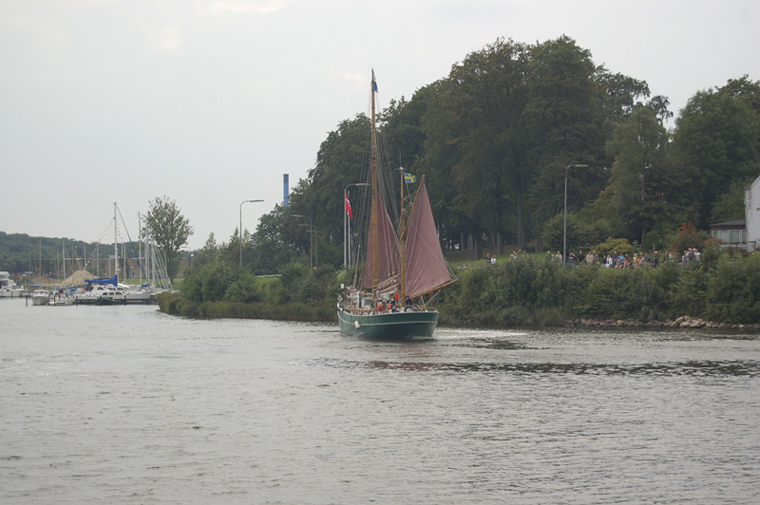 The battle at Kolberger Heide, Germany, in 1644 was replayed in Odense harbour with sailyachts as props, a lot of smoke, many gunshots am big bombs in the water, sending watercolumns 2030 meters into the air.