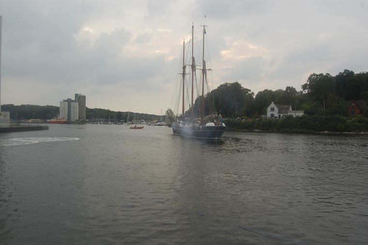 The battle at Kolberger Heide, Germany, in 1644 was replayed in Odense harbour with sailyachts as props, a lot of smoke, many gunshots am big bombs in the water, sending watercolumns 2030 meters into the air.