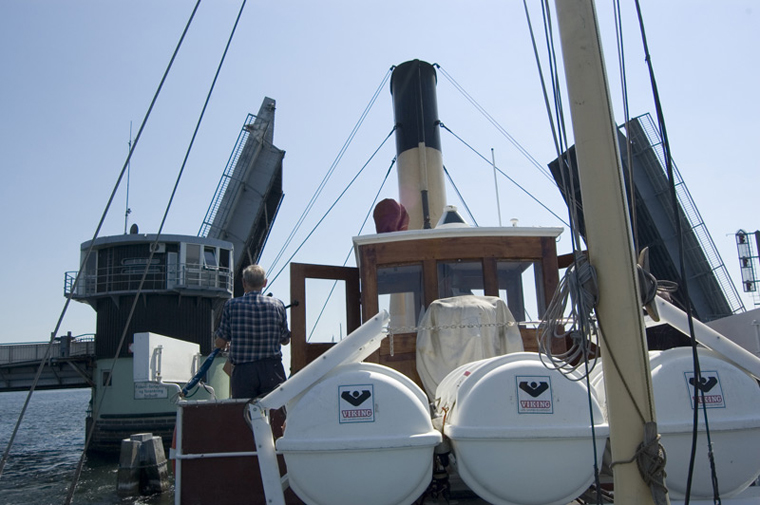 First we must pass the bridge. Jørgen Wrem is keeping watch.