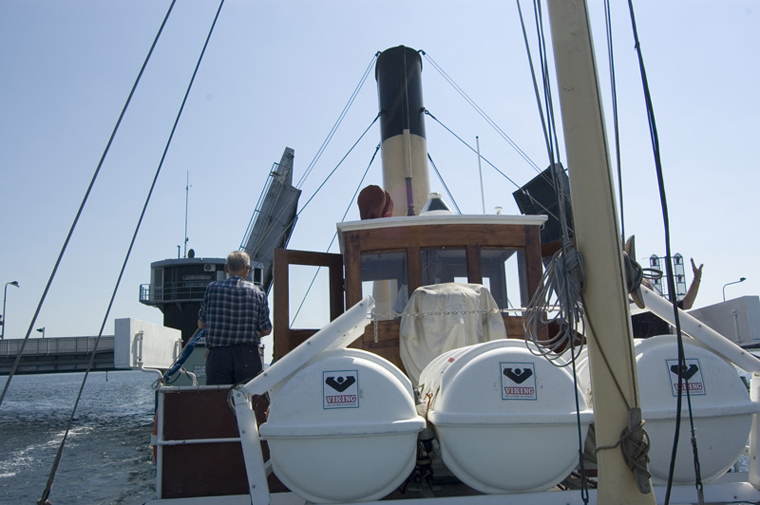 First we must pass the bridge. Jørgen Wrem is keeping watch.