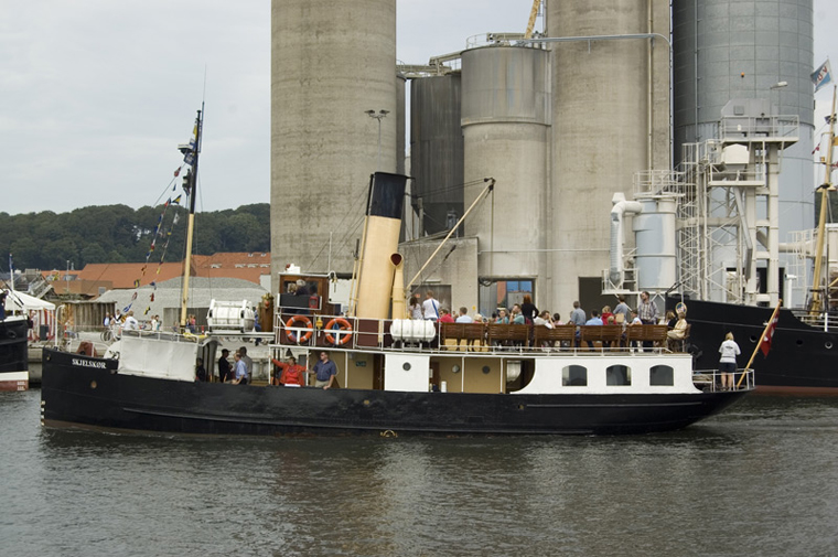 S/S Skjelskør is entering Vejle harbour, Denmark. after a tourist tour.
