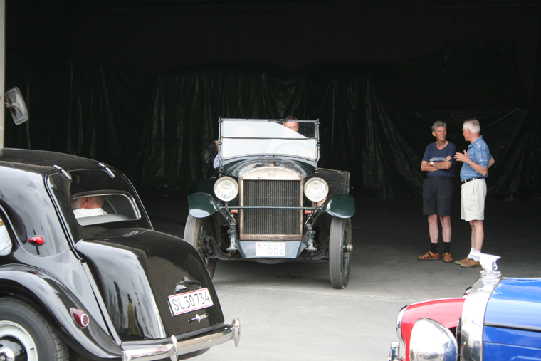 Veteran cars is starting the parade with crew members from the ships.