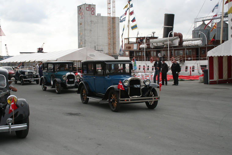 Veteran cars is starting the parade with crew members from the ships.